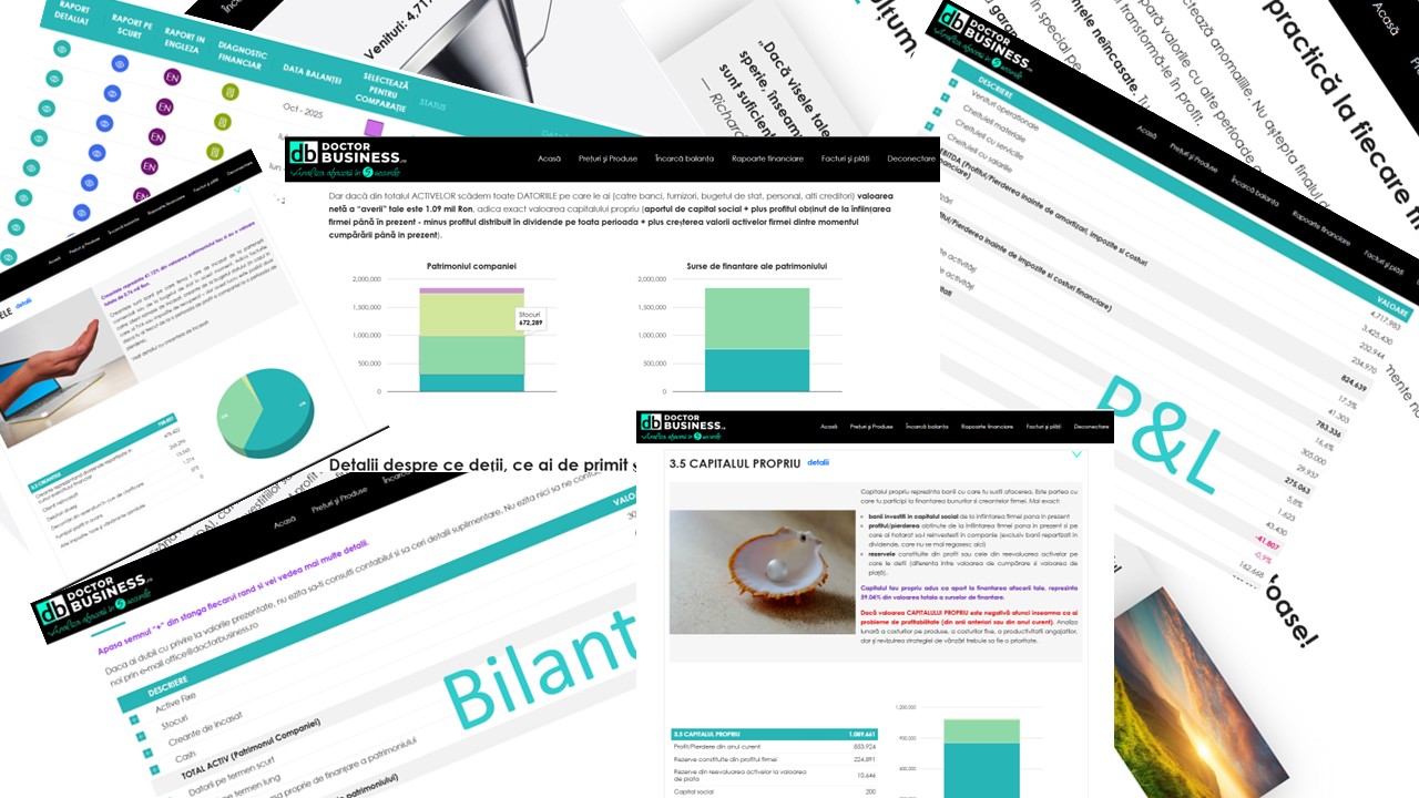Doctorbusiness.ro este singura aplicatie care face analiza financiara a firmei pe baza cifrelor reale din balanta lunara a firmei.